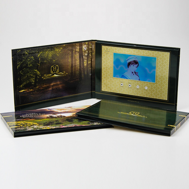 منتج شائع كتيب دعوة زفاف مخصص هدايا الأعمال شاشة lcd تحية مشغل موسيقى كتاب بطاقة فيديو كتيب